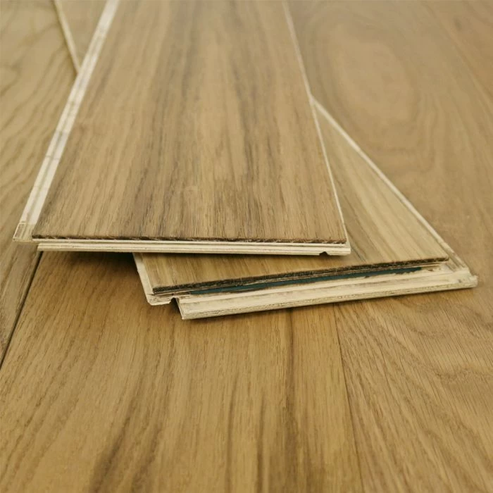 Engineered hardwood flooring is extremely versatile and durable so the perfect choice for any room in your home. It is constructed of a wear layer of your chosen species of wood and then a plywood base to give stability and strength. Once it has been installed it looks just like solid wood flooring, although you have the extra benefits of choosing from wider and longer boards, being able to use it with underfloor heating if you wish, and it can be installed in different ways depending upon requirements.