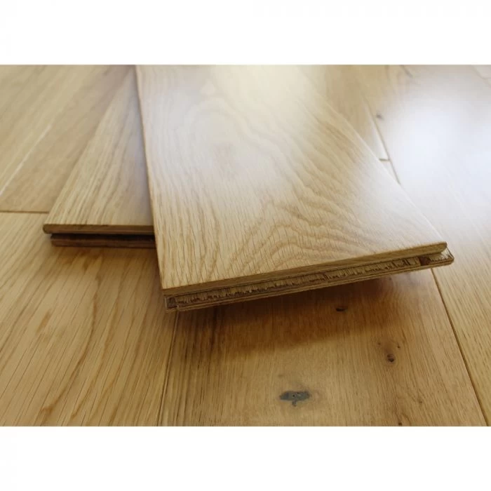 Engineered hardwood flooring is extremely versatile and durable so the perfect choice for any room in your home. It is constructed of a wear layer of your chosen species of wood and then a plywood base to give stability and strength. Once it has been installed it looks just like solid wood flooring, although you have the extra benefits of choosing from wider and longer boards, being able to use it with underfloor heating if you wish, and it can be installed in different ways depending upon requirements.