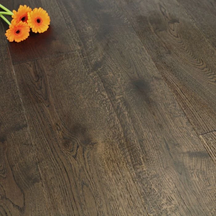 A brushed and lacquered finish to hardwood flooring means that the surface of the flooring has been lightly brushed to expose the natural qualities and charm of the wood without causing any damage. The hardwood has then been finished with protective layers of lacquer. The floor will be ready to use once installation is complete.