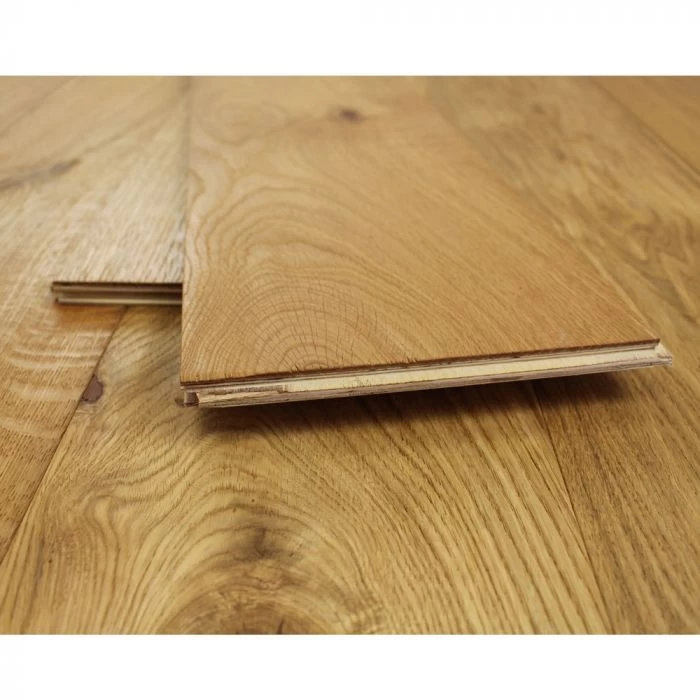 Engineered hardwood flooring is extremely versatile and durable so the perfect choice for any room in your home. It is constructed of a wear layer of your chosen species of wood and then a plywood base to give stability and strength. Once it has been installed it looks just like solid wood flooring, although you have the extra benefits of choosing from wider and longer boards, being able to use it with underfloor heating if you wish, and it can be installed in different ways depending upon requirements.