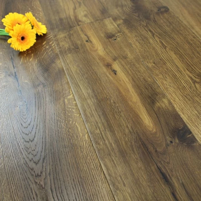 A brushed and oiled finish to hardwood flooring means that the surface of the flooring has been lightly brushed to expose the natural qualities and charm of the wood without causing any damage. The hardwood has then been protected with a matt oil. The floor will be ready to use once installation is complete.