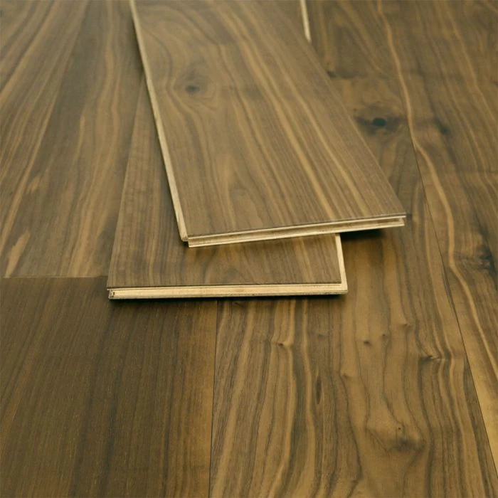 Engineered hardwood flooring is extremely versatile and durable so the perfect choice for any room in your home. It is constructed of a wear layer of your chosen species of wood and then a plywood base to give stability and strength. Once it has been installed it looks just like solid wood flooring, although you have the extra benefits of choosing from wider and longer boards, being able to use it with underfloor heating if you wish, and it can be installed in different ways depending upon requirements.