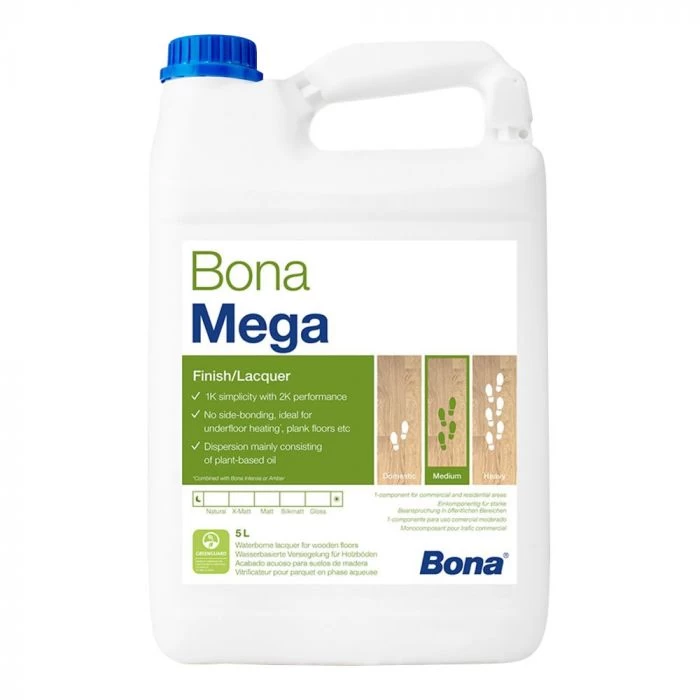 Bona Mega Varnish is a water-based, polyurethane floor varnish. Ideal for offices, small shops, hotel rooms and domestic properties, Bona Mega offers the performance of a 2K floor varnish in a ready-to-use formula. Provides excellent flow and levelling to give an exceptional, professional looking finish every time.