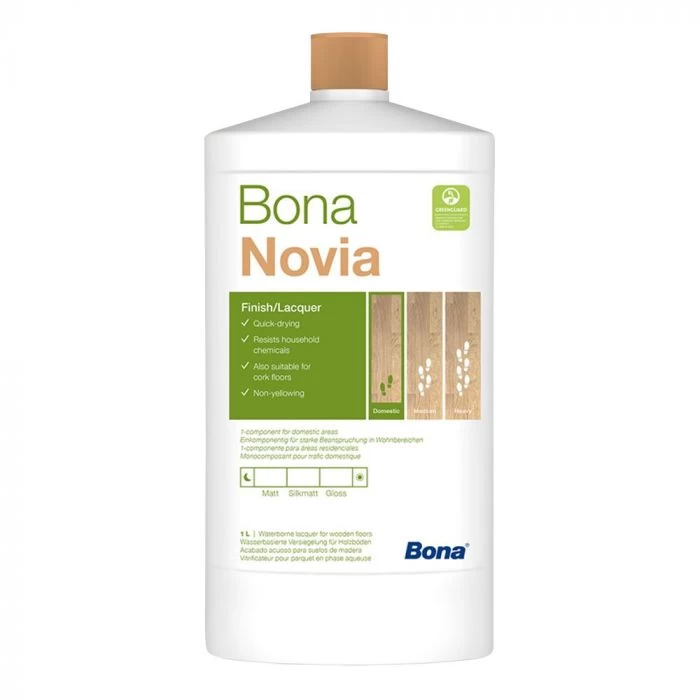 Bona Novia Varnish is a 1 part polyurethane/acrylate topcoat.