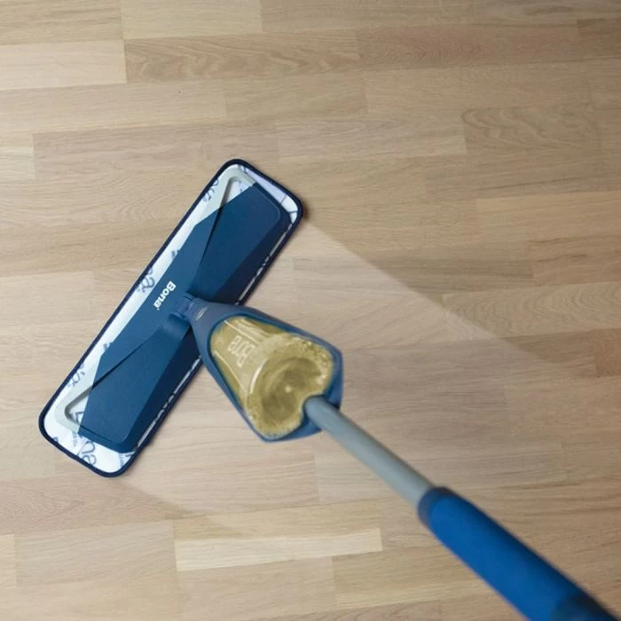 The Bona Premium Spray Mop for Oiled Wood Floor is the easiest and most effective way of cleaning oiled wood floors in the home. Simply spray and wipe the floor clean. It cleans and nourishes your oiled wood floor while providing extra protection. The Bona Spray Mop is so easy to use, just simply slide the bottle into the cage until you hear a click. When it comes to refilling your cartridge, simply press the silver button, unscrew the white cap, refill, screw back on the white cap and slide back into the cage until you hear a click.