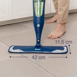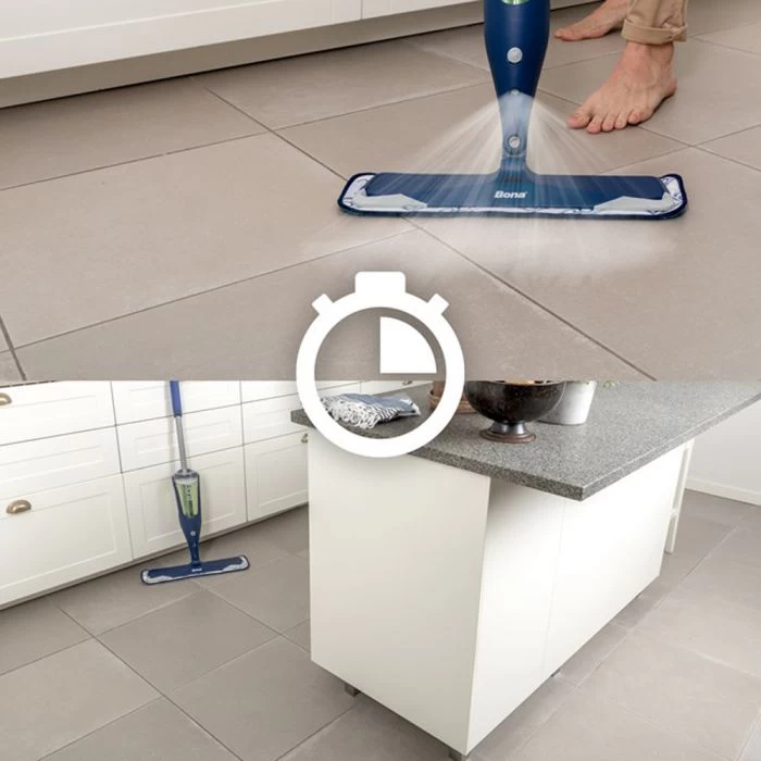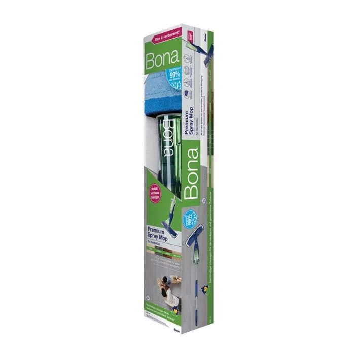 The Bona Premium Spray Mop for Hard-Surface Floors is a spray mop that combines the Bona Stone, Tile & Laminate Floor Cleaner in a convenient bottle along with the Bona Microfiber Cleaning Pad. The grip on the sturdy handle has a trigger that releases a fine mist, making it quick and easy to clean your hard-surface floors. It is specially formulated for linoleum, stone, terrazzo, vinyl, sealed porous marble, laminate and no-wax sealed tile (ceramic, Mexican Saltillo, quarry). Water-based solutions and GREENGUARD GOLD certification ensure a safe product for your family, your pets, and our planet.