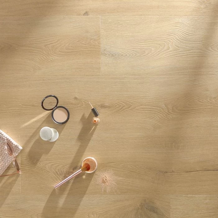 Stain-resistant, matte PU top layer. This protects from stains, dirt and scratches, making maintenance easy. The matte surface finish gives a totally natural look.