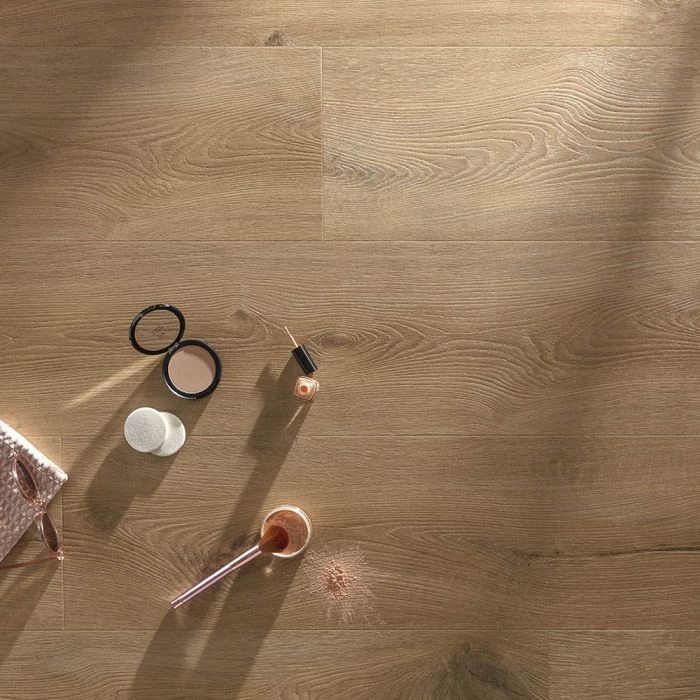 Stain-resistant, matte PU top layer. This protects from stains, dirt and scratches, making maintenance easy. The matte surface finish gives a totally natural look.