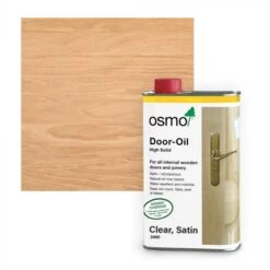 Osmo Door Oil 3060 is a clear satin oil for use on solid wood interior doors NB Can be used on some veneered doors depending on the thickness of the veneer. Will not crack, peel, flake or blister.