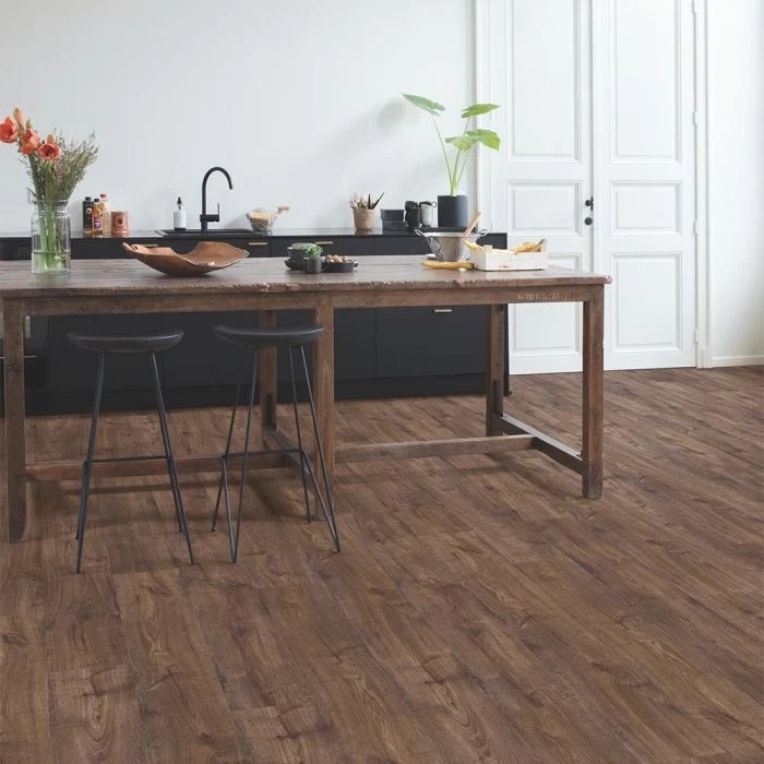 Quick-Step Livyn Alpha vinyl floors are fully water proof thanks to their advanced watertight click system. This makes them a perfect choice for wet areas such as bathrooms or kitchens.