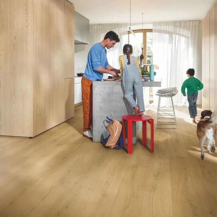 Quick-Step Alpha rigid vinyl floors are scratch and stain resistant. The super strong rigid core means in most cases you don’t need to prepare the subfloor.