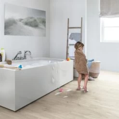 Quick-Step Livyn Alpha vinyl floors are fully water proof thanks to their advanced watertight click system. This makes them a perfect choice for wet areas such as bathrooms or kitchens.