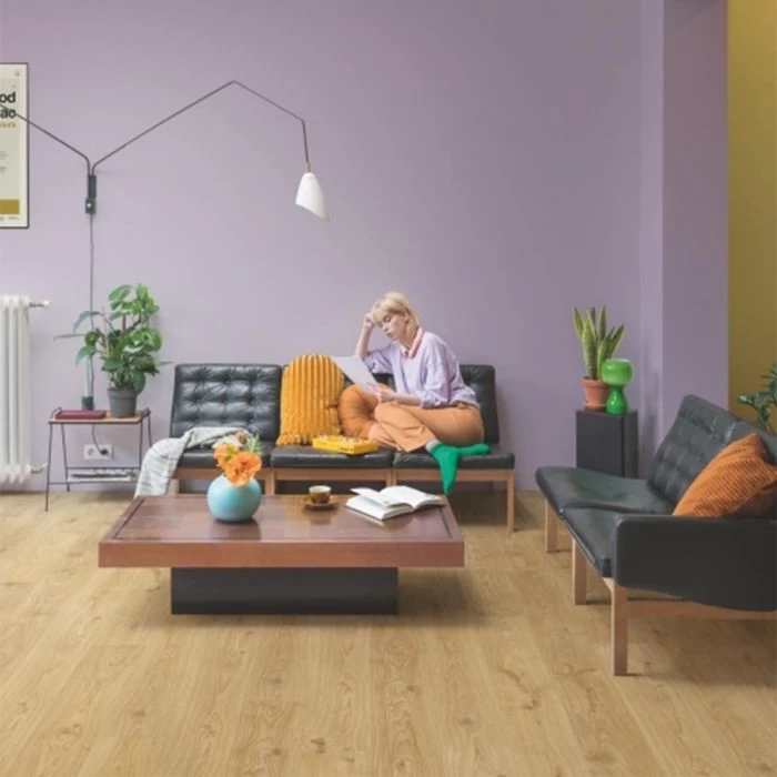 Quick-Step Alpha vinyl flooring is extremely versatile and durable, making it the perfect choice for any room in your home. It’s rigid core means in most cases you don’t need to prepare your subfloor before fitting. Its water-repellent technology combined with its advanced watertight click system ensures a fully waterproof floor. Alpha vinyl flooring is exceptionally thin and is underfloor heating compatible.