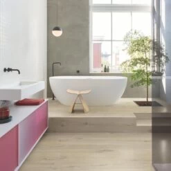 Quick-Step Livyn Alpha vinyl floors are fully water proof thanks to their advanced watertight click system. This makes them a perfect choice for wet areas such as bathrooms or kitchens.