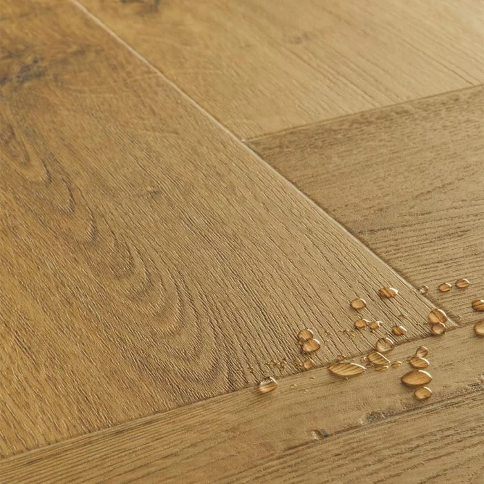 Quick-Step Livyn Alpha vinyl floors are fully water proof thanks to their advanced watertight click system. This makes them a perfect choice for wet areas such as bathrooms or kitchens.