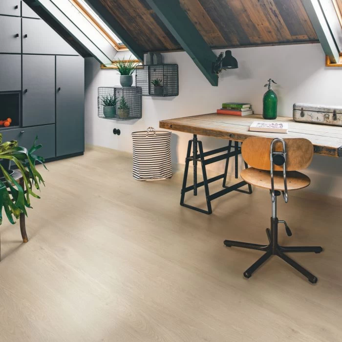 Quick-Step Livyn vinyl flooring is extremely versatile and durable, making it the perfect choice for any room in your home. It is constructed of five different layers, creating a waterproof surface with sound-reducing benefits. Vinyl flooring is exceptionally thin and is underfloor heating compatible.