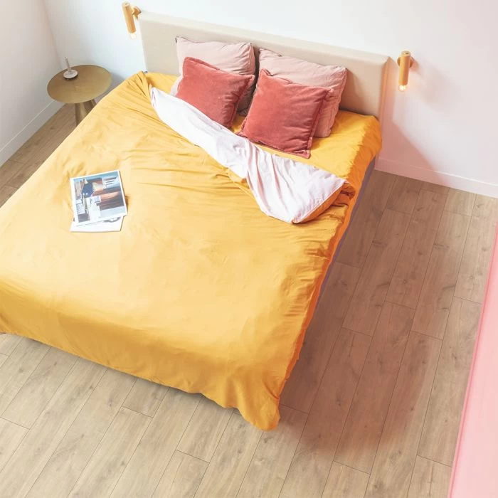 Floating a floor over an underlay means the planks of flooring are attached together by the click fitting system, but they are not fixed directly down to the subfloor; instead they float over a layer of underlay. This method of installation is compatible with underfloor heating.