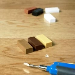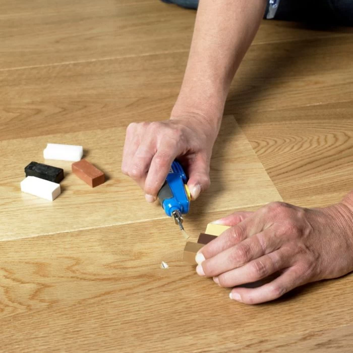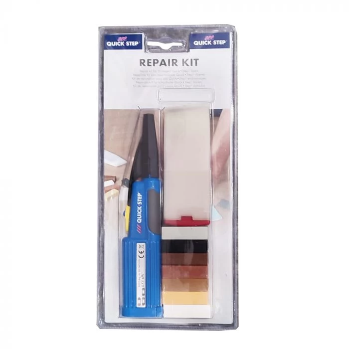 Light damage can easily be repaired in the original colour with the Quick-Step Repair Kit. Simply recreate the colour of your damaged planks caused by, for example scissors, with one of the seven wax pieces selected to cover all Quick-Step colours. Contents: melting knife, cleaning comb, 7 wax blocks, sanding pad.