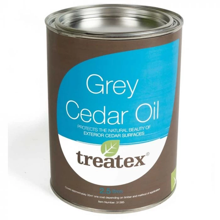 Treatex Grey Cedar Oil will immediately enhance the colour of Cedar to achieve the naturally greyed effect that comes with age, whilst still protecting and allowing the timber to mature. This can be maintained through future applications of Grey Cedar Oil or be left to mature naturally over time as required.